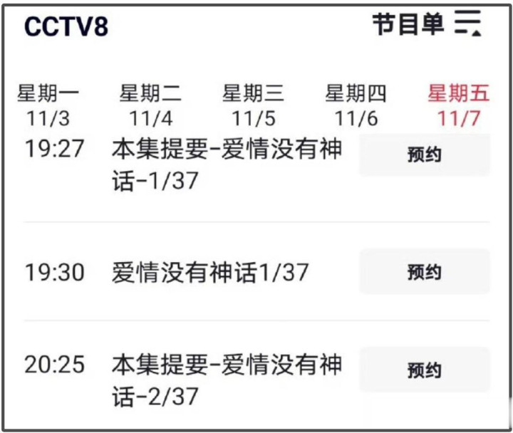 据了解,该剧于2024年8月31日开机,2025年2月15日杀青,预计在今年十一月初播出。根据网上曝光的央八节目单中可以看到,《爱情没有神话》计划在11月7日正式和观众见面。此外,许多业内人士也在十月末的时候就曝光了鹅厂排播情况,《爱情没有神话》赫然在列,时间和央八节目单上的时间也是一致的。